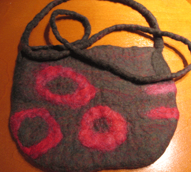 I took beginning feltmaking and locker hooking classes from Una Walker. I love the feel of wool in my hands and will enjoy making more handfelted accessories.